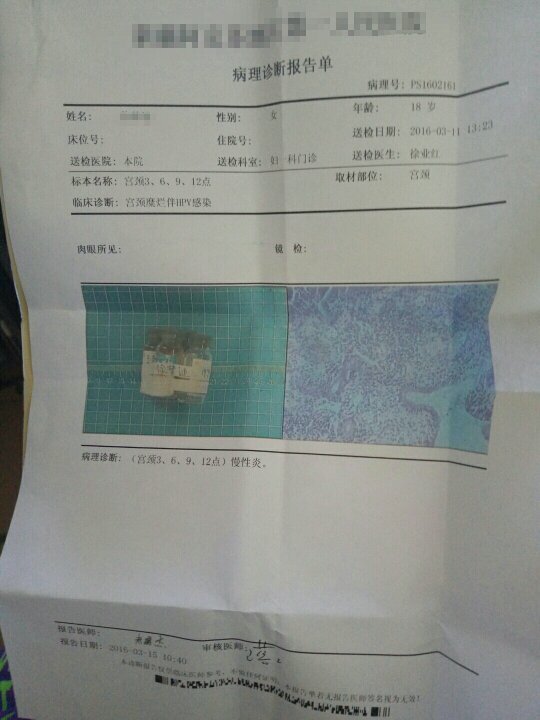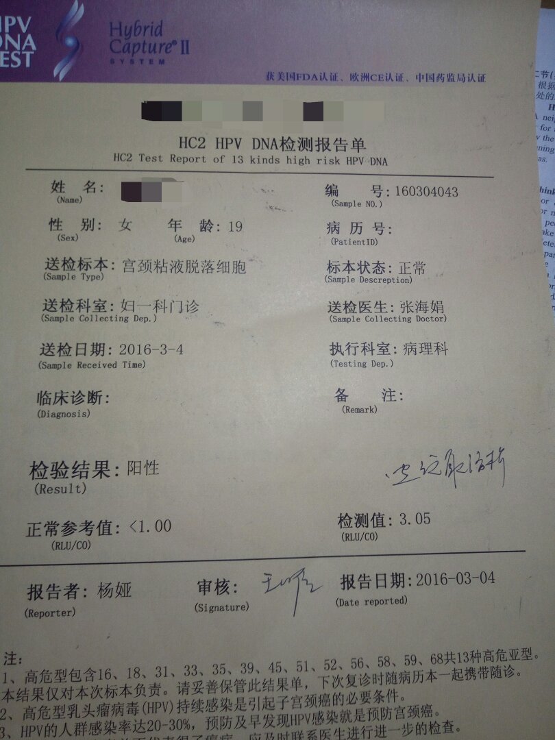 我今年18宫颈糜烂1°,但是伴有hpv感染,宫颈3.6.9.12点感染,请问我该怎么办? 点击展开 匿名用户 2016-04-18 09:59 满意回答 宫颈糜烂属于取消的诊断,目府急前叫做宫颈柱状上皮移位,是蛋贸毫属于不用治疗的,至于这个hpv,结合tct和病理结果看是没问题的,定期复查就行耀唤 s小小田s 2016-04-18 10:08 宝宝知道提示您:回答为网友贡献,仅供参考。 相关问题 轻度宫颈糜烂是否说明已经感染了HPV?感染HPV后如果转为阴性,打宫颈癌疫苗是否还有效果? 宫颈糜烂感染hpv严重吗? hpv18宫颈糜烂可以生小孩吗
