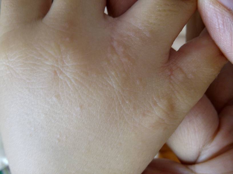 2岁半宝宝两只手指缝,手背,手腕都出现如图的小疙瘩,开始有点红,见宝宝抓过2次,指缝最严重,问宝宝 2岁半宝宝两只手指缝,手背,手腕都出现如图的小疙瘩,开始有点红,见宝宝抓过2次,指缝最严重,问宝宝,她说不疼不痒,这是什么情况啊 点击展开 匿名用户 2014-05-26 07:56 为您推荐: 其他回答 看症状怀疑是小儿的湿疹,建议外用率要膏涂擦治疗。注意卫生,避免玩土,沙子之类的。 lifangmei2014 2014-05-26 08:44 相关问题 宝宝手腕和手背上起了好多疙瘩 上面有白水头 是怎么回事啊 小孩手背、手腕生出一些疱疹状的小疙瘩,是什么皮肤病?怎样治疗? 感觉像骨头,在手背靠近手腕的食指延长快接近手腕的位置 宝宝没感觉疼痛 手指活动灵活 请问是什么