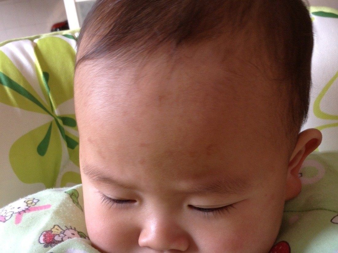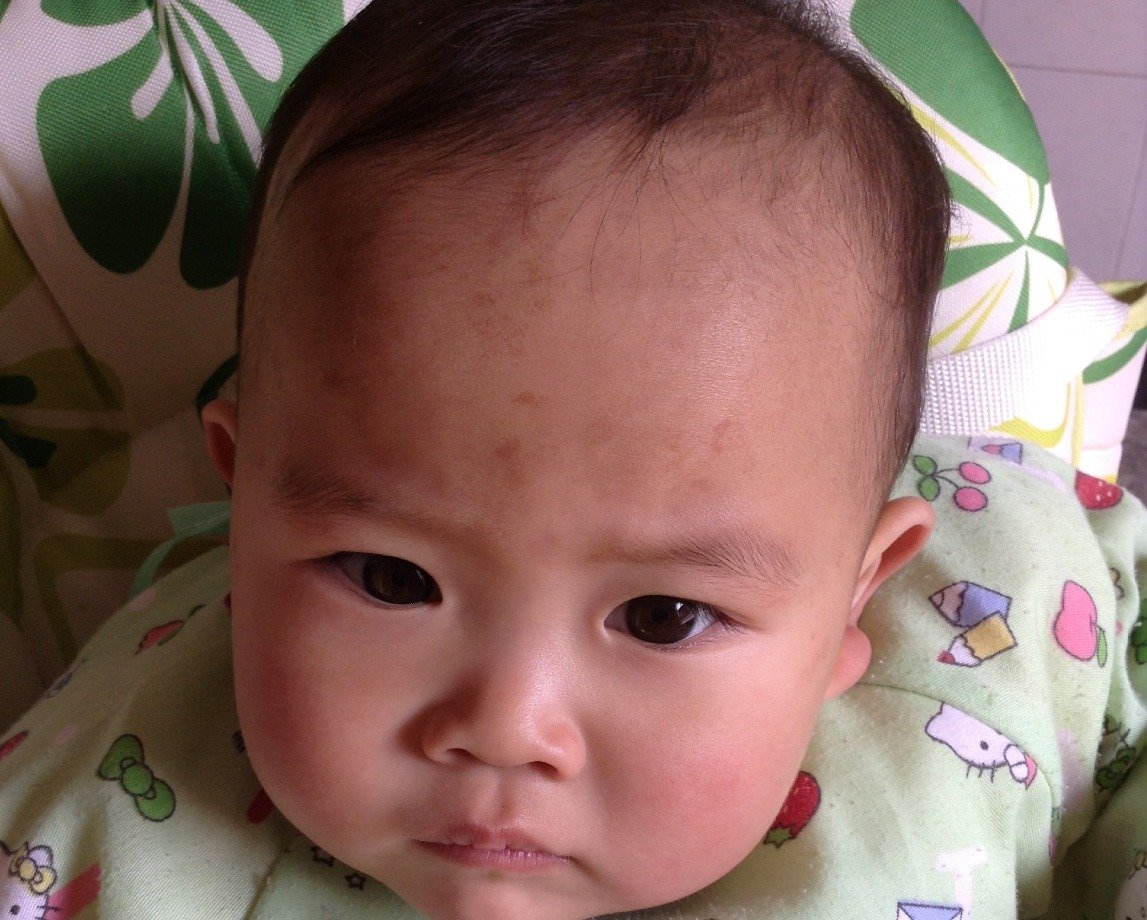 宝宝现在十一个月多,在五六个月的时候,额头出现咖啡色斑点,现在颜色越来越深,越来越多,去了好多医院都没明确告知病症,有一个医生说可能是寻麻疹,但也没说治疗方法,只说观察观察,可是现在越来越多,想问一下,这个到底是什么,有治疗方法吗?