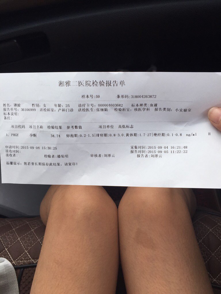 问:试孕纸呈阳性,但是B超看不到孕囊,然后又出了血,不过只有一点点,没有腹痛跟其他症状,只是人比较 问:试孕纸呈阳性,但是B超看不到孕囊,然后又出了血,不过只有一点点,没有腹痛跟其他症状,只是人比较疲惫。抽血两次检测结果如下图 点击展开 匿名用户 2015-09-05 18:37 为您推荐: 其他回答 这是男人的腿还是女的? 匿名用户 2015-09-05 19:11 真不要脸 匿名用户 2015-09-05 18:39 相关问题 我现在停经45天,试孕纸检测为阳性,但做B超又显示没有怀孕!医生说不排除宫外孕,可是我没有腹痛,没 怀孕38周最近几天阴道老是流着一点点的血,鲜红色的,没有腹痛,37周才做的B超医生说一切正常啊,昨 3 3同房,最近伴有乳房胀,腰酸,偶尔轻微腹痛,试孕纸为阴性是怎么回事???