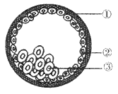 高等哺乳动物受精后不久,受精卵开始避行细胞分裂。经桑椹胚、囊胚、原肠胚和组织器官的分化,最后发育成一个完整的幼体,下列有关叙述不正确的是 [ ] A.上图是胚胎发育过程中囊胚期示意图,①②③依次称之为透明带、滋养层、内细胞团 B.高等哺乳动物胚胎发育经历的时期是受精卵→卵裂期→桑椹胚→囊胚期→原肠胚期→幼体,其中最关键的时期是原肠胚期C.高等哺乳动物胚胎发育中的细胞分化开始于囊胚期,终止于生命结束 D.进行胚胎分割时,应选择原肠胚期的胚胎进行