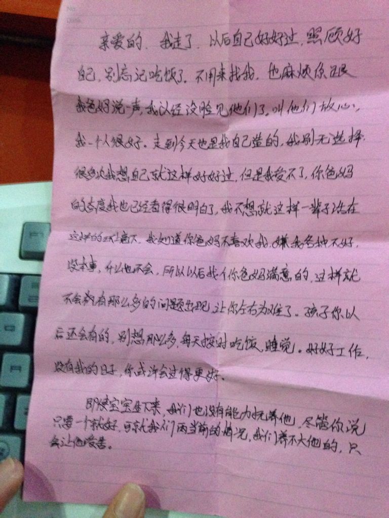 女朋友怀孕6个月,11月5号离家出走,给我留了两张纸条,5号晚上又发了条信息给我,内容是:不要找我