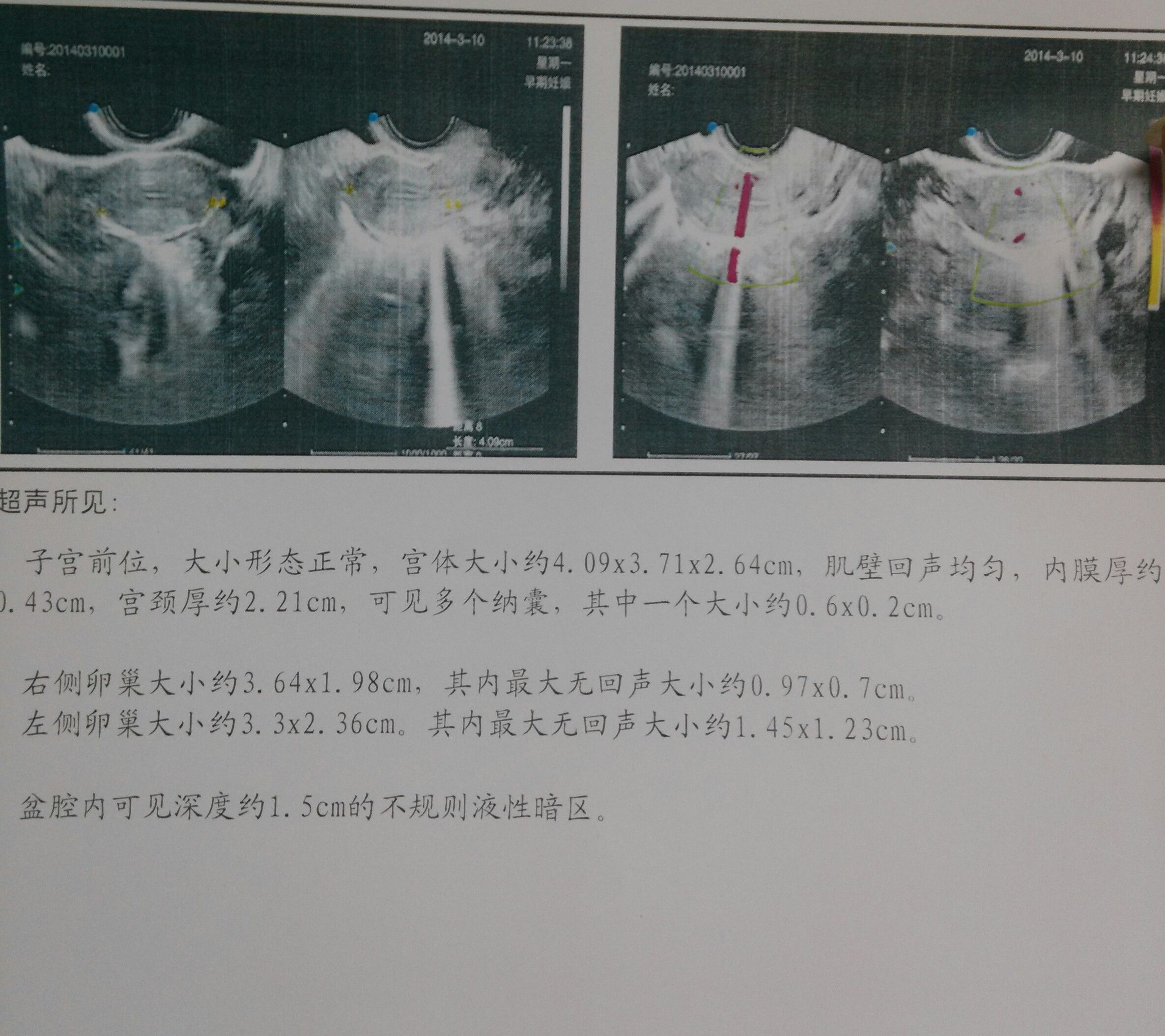 想检查排卵是不正常,去医院让我检查了彩超 阴道镜 分泌物检测,彩超里说盆腔内可见深度约1.5CM的 不规则液性暗区是什么意思严重么?需要怎么治疗?下面3张图是彩超 阴道镜 分泌物检测都有什么问题? 点击展开 匿名用户 2014-03-11 20:30 为您推荐: 其他回答 病情分析: 您好,您的所有检查结果就现在这样看起来 指导意见: 基本上没有什么问题。所以如果您有什么不舒服的地方可以再跟我讲的 匿名用户 2014-03-11 20:56 相关问题 我24周检查的四维彩超羊水最大深度5 64厘米,羊水指数19 28厘米,提示说羊水多,我该怎么办? 我24周检查的四维彩超羊水最大深度5 64厘米,羊水指数19 28厘米,提示说羊水多,我该怎么办? 怀孕25W,四维彩超报告单显示羊水最大深度75mm,羊水指数200mm,超声提示羊水过多