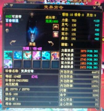 119可带,说实话,要你到119了还差这BB吗? 外攻BB不值钱,不过如果你要搞符体的话倒是可以,悟10灵9也快了 不过可惜是85可带的,而且不是大完美2035的,8000YB吧
