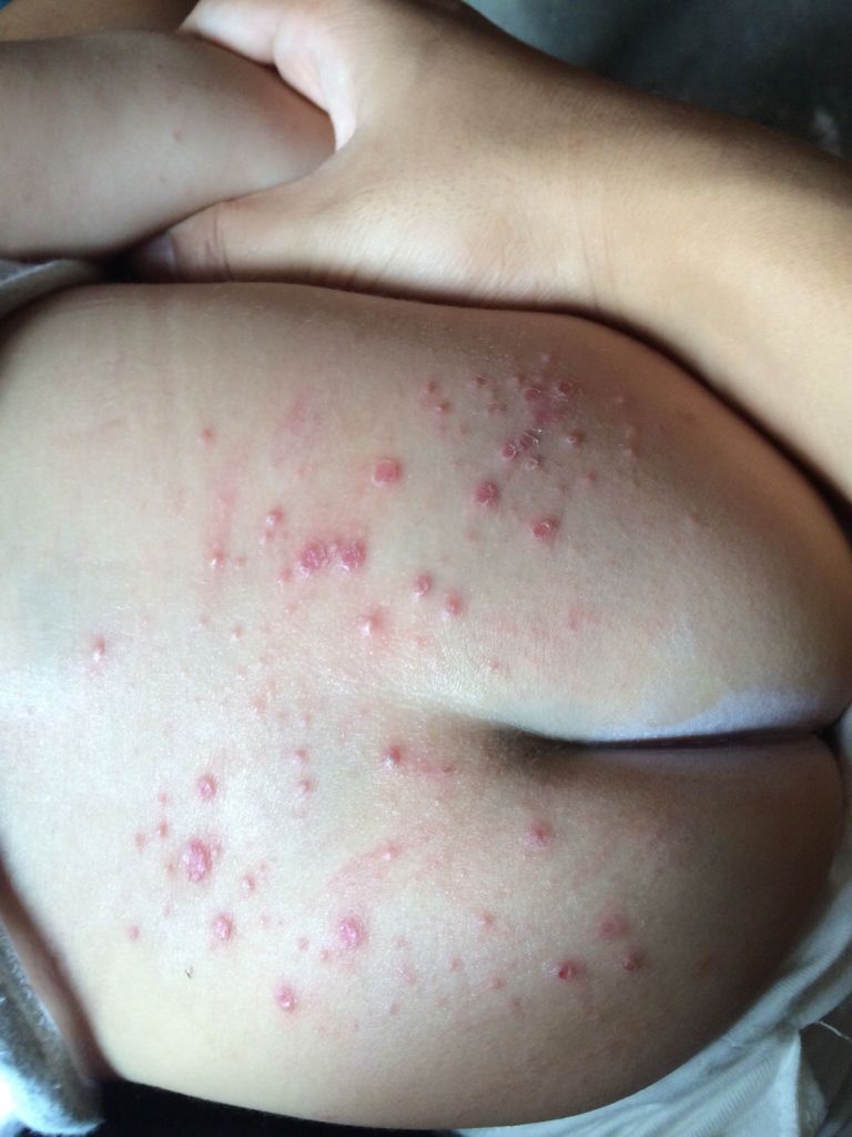 问:13个多月宝宝屁股长了很多红疙瘩,有的有脓包,最开始只长了几粒,慢慢的多起来了,宝宝总是抓,这