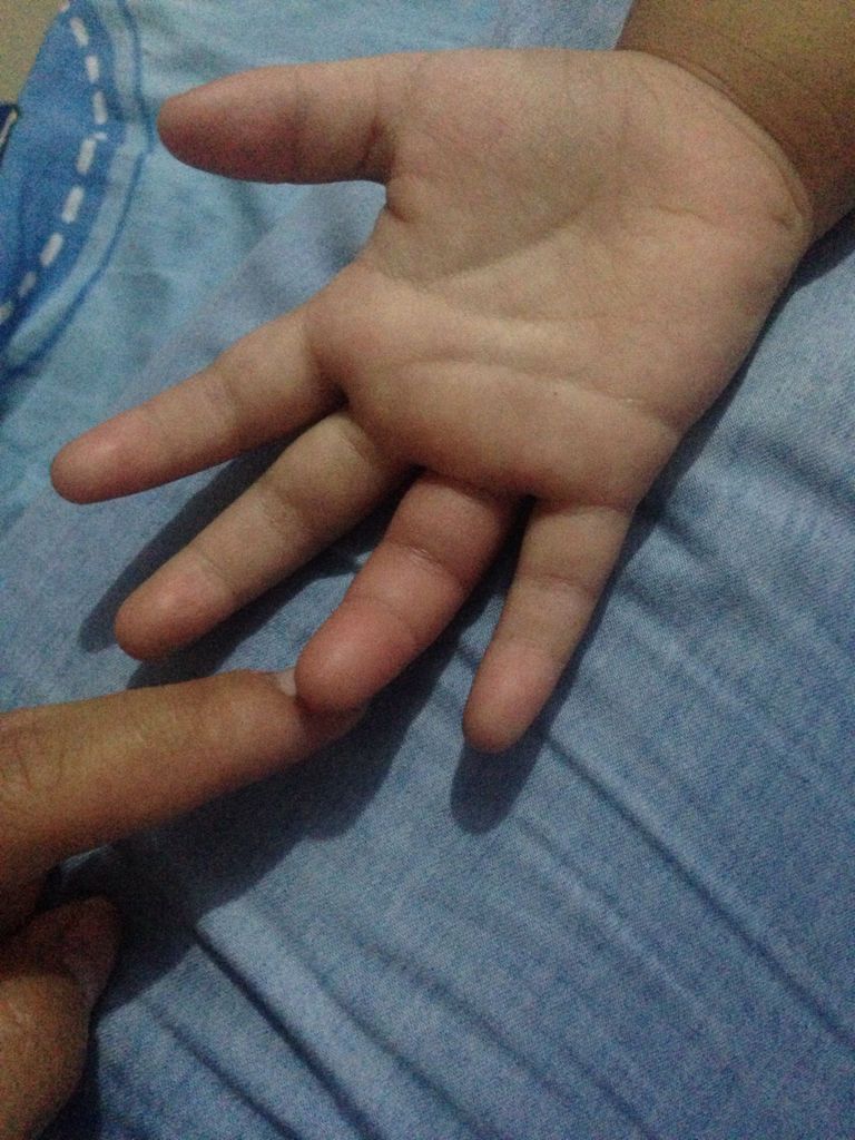 3岁小孩手指肿了,腿也有两个大包,是什么咬的吗?今天早晨发现的,手指本来最上面肿,现在一根手指都肿
