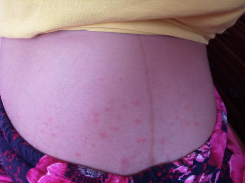 怀孕35周,肚子周围有红疹,有点痒,请问是什么原因,平时饮食正常,没有过敏的食物