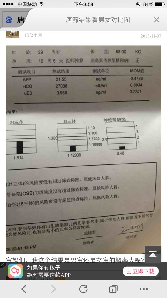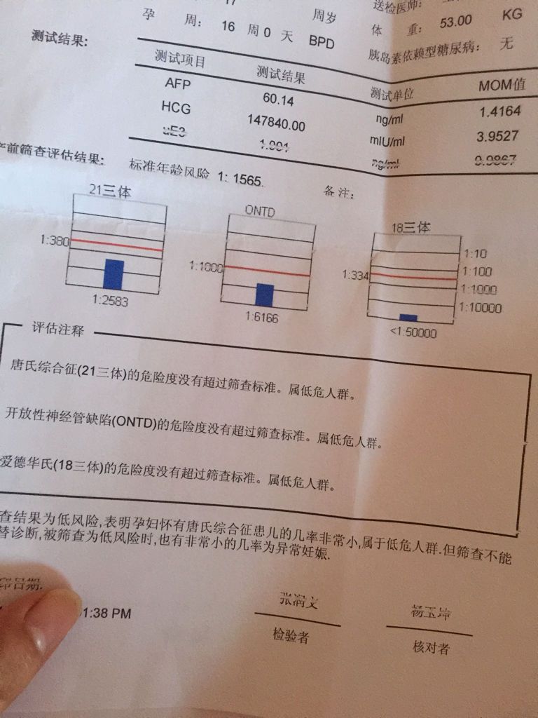 唐帅一点用都没有,算的都是几率,有些人几率低生的还是唐氏儿,有些人几率高的生的也是正常的,所以几率这种东西不准的,真的想确诊还是羊水穿刺,但是羊水穿刺有感染的风险。
