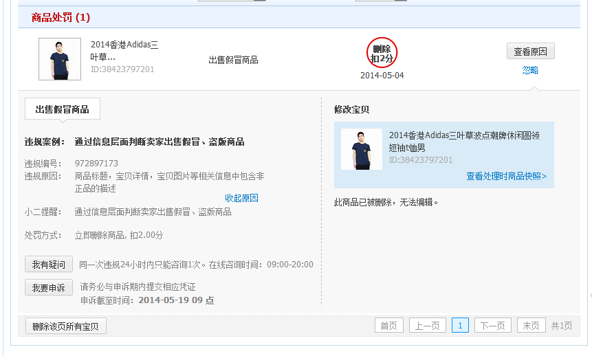 淘宝宝贝被处罚,说是出售假冒商品,而且还直接扣2分,我要怎么办?