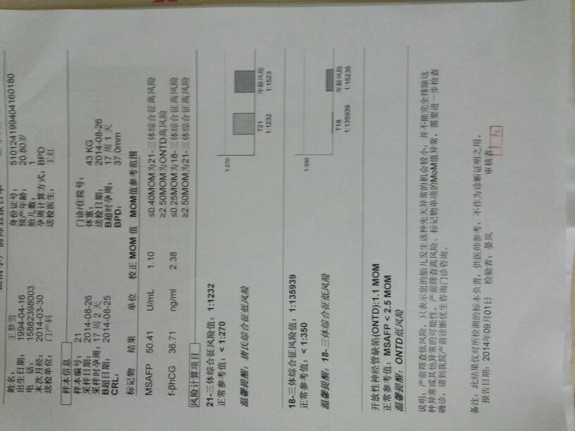 大家帮我看看、我的唐氏筛查有问题吗?问了医生啥也没说、感觉不靠谱阿、看了其他妈妈做了什么nt 和无