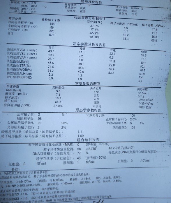 从检查结果看除精子活力差外,其它各项均正常。