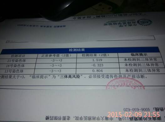 无创产前胎儿DNA报告,这是什么意思 点击展开 江南风 2015-02-09 21:57 满意回答 你好缠征,你的胎儿之化局无创DNA检查报告显示,耻稼21、18、13三体低风险,说明胎儿没有患该三种染色体异常的风险,是正常的。 youyichun乐园 2017-12-12 21:17 宝宝知道提示您:回答为网友贡献,仅供参考。 相关问题 产前无创DNA14天了怎么还不出结果饿 省立医院和安徽省妇幼保健院哪家做无创DNA产前检测便宜些? 无创产前胎儿DNA报告,这是什么意思