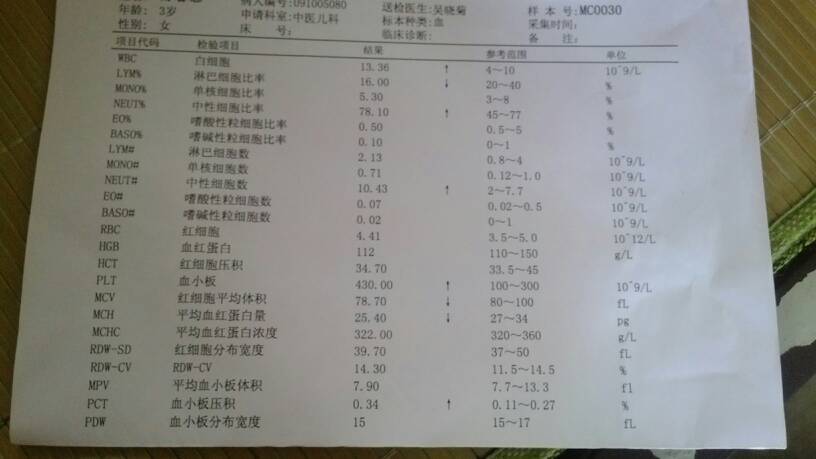 以上是孩子今天的血常规检查,有几项不正常,跪求指点,是什么情况,该怎么治疗,本人万分感谢!本人小孩
