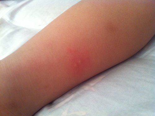 宝宝前两天被家里狗狗的牙齿刮到了,去打了狂犬疫苗,晚上有点发烧,两天后两只脚的脚踝上面长了小水泡