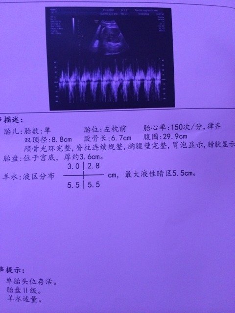 帮我看看B超单入盆了没有?刚照片发错了 帮我看看B超单入盆了没有?刚照片发错了 点击展开 茜茜! 2014-11-01 21:04 为您推荐: 其他回答 一切正常羊水正常胎盘功能良好胎位正 断翅、蝶 2014-11-02 10:47 祝宝妈好孕 小俊妈妈 2014-11-02 08:27 头下来叫入盆,医生说头下来了吗 158*****820_oabx 2014-11-01 22:41 哦哦,那就是了 158*****820_oabx 2014-11-01 22:39 入盆是没有感觉得 158*****820_oabx 2014-11-01 22:38 加载更多 相关问题 帮我看看B超单子入盆没有? 我现在刚有37周,照b超还没入盆,会不会有早产的可能?一般提前多久顺产?谢谢 36周时就是半入盆,现在38周+4了依然是半入盆,昨天刚做的B超胎儿双顶径9 3cm,脑袋是不是挺