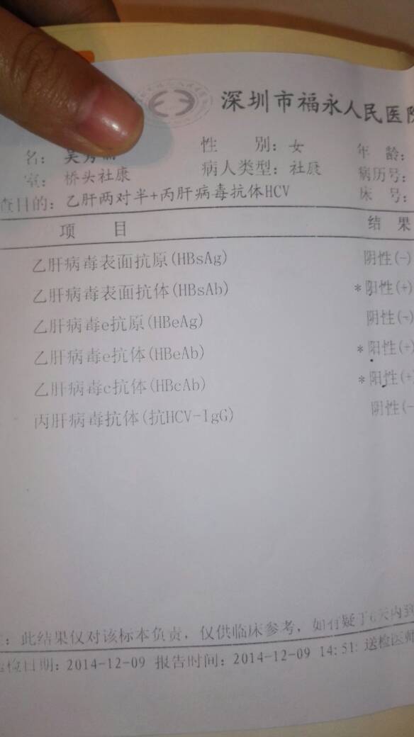 乙肝病毒表面抗体阳性,乙肝病毒e抗体,阳性,乙肝病毒c抗体阳性,有在线医生吗?帮看看要不要紧 乙肝病毒表面抗体阳性,乙肝病毒e抗体,阳性,乙肝病毒c抗体阳性,有在线医生吗?帮看看要不要紧, 点击展开 可爱&的小不点 2015-01-24 15:00 为您推荐: 其他回答 你很辛运。以后宝宝也要打哦 超A翡翠玉石专卖 2015-01-24 15:49 那就不必担心。你打预防针? 超A翡翠玉石专卖 2015-01-24 15:44 我也是乙肝病毒携带者。肝功能六项正常就好 超A翡翠玉石专卖 2015-01-24 15:37 ,,,健康。 185*****151_8lz1 2015-01-24 15:35 祝宝宝麻麻健康 吴家有儿女初成长 2015-01-24 15:15 加载更多 相关问题 乙肝病毒表面抗体阳性和乙肝病毒核心抗体阳性是什么意思 宝宝2岁乙肝表面抗体阳性核心抗体阳性?爸爸是乙肝病毒携带者有传染吗?