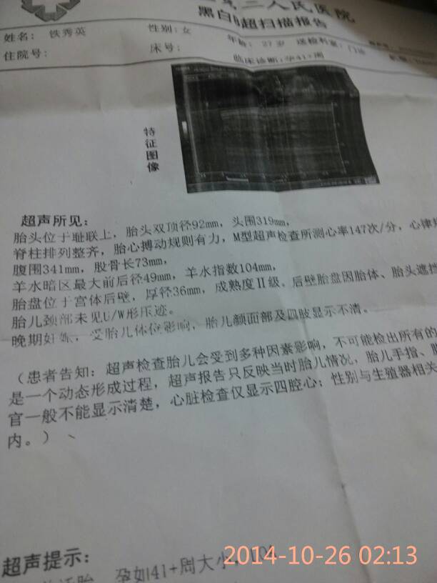 我老婆超过预产期12天了,今天去医院检查,做的B超,胎头位于耻联上,胎头双顶经92 mm,头围31