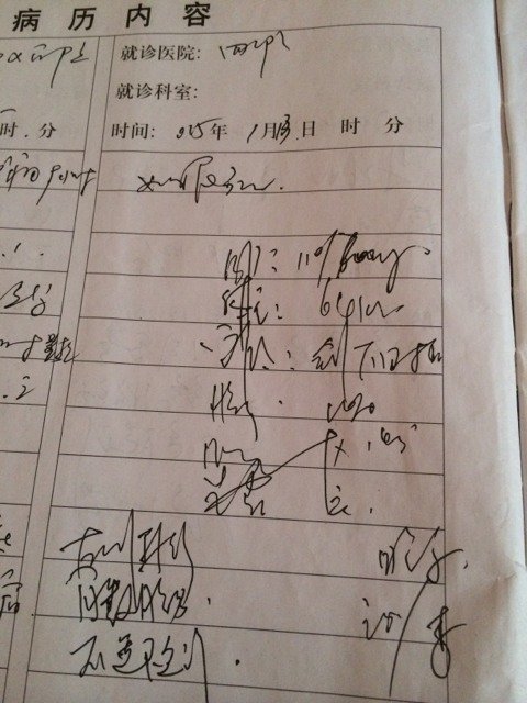 上午去产检,医生写的病历…看后,我很想说一句“大夫,你这字就不能好好写吗?” 上午去产检,医生写的病历……看后,我很想说一句“大夫,你这字就不能好好写吗?” 点击展开 188*****364 2015-01-13 12:22 为您推荐: 其他回答 我也是看不懂她们写的 家侑→_→兩寳 2015-01-13 15:42 医生多这样 爱人_efQX 2015-01-13 14:56 医生写的一般人都不认识 J ゝ 2015-01-13 13:32 医生写的只有医生看得懂 回眸烂漫的幸福 2015-01-13 13:06 医生的字就是为了不让病人看懂……这是一个医生说的 新生活。你好 2015-01-13 12:51 加载更多 相关问题 大夫 你好 我现在孕期33+4 我前天去检查大夫给我病历上写的 头位 那么我想问头 怀孕一个多月了今天去哈尔滨红十字中心医院产科做彩超检查,大夫没给我写半个字病历也没告诉我注意事项? 怀孕一个多月了今天去哈尔滨红十字中心医院产科做彩超检查,大夫给我写病历也没告诉我注意事项和病情?
