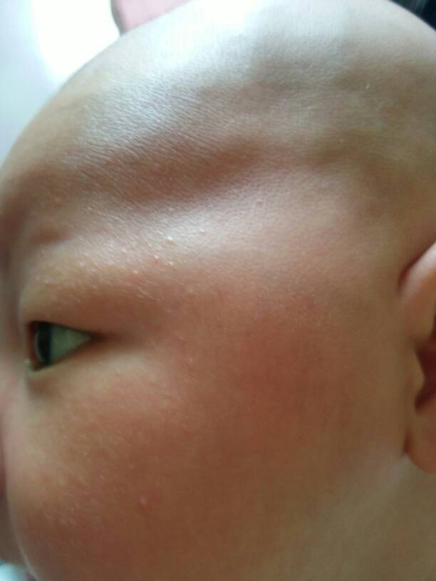 以前我宝脸上长了好多 有些一粒粒白白的像豆豆 也有像粉刺的 医生说是湿疹