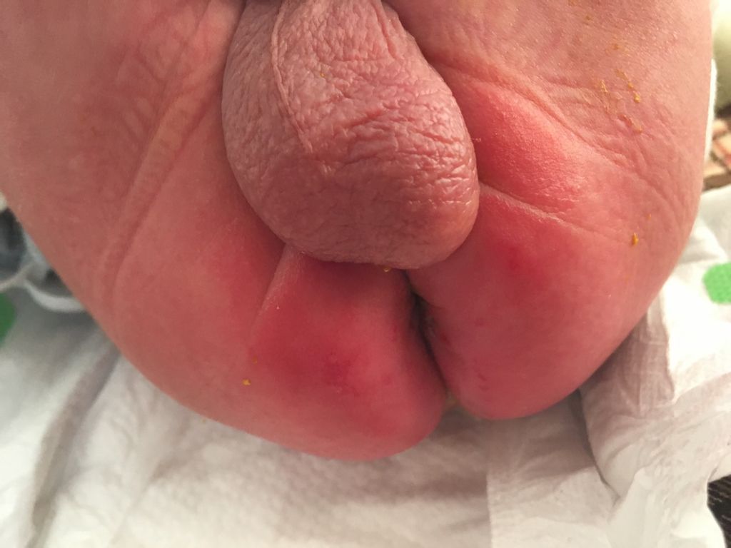 问:半月大男宝宝屁股红破皮有红疙瘩怎么办啊,已经改用尿布一湿就换了,便后清水洗擦贝亲护臀膏了还是没缓解。大概是因为吃母乳拉肚子吧,一天拉十多次,放屁也有大便,还拉蛋花状的泡沫,需要断奶喂奶粉吗?用奶瓶还是调羹喂?是因为妈妈吃太油了吗?求帮助啊!!!都快急哭了!!