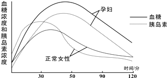 女性孕期血糖偏高是一种常见现象.8图为进食葡萄糖后,孕妇与正常女性(非孕妇)血糖浓度变化的数据记录
