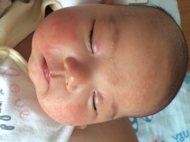 请教医生孩子脸是过敏了还是出的湿疹呢,宝宝五十天,用去医院吗