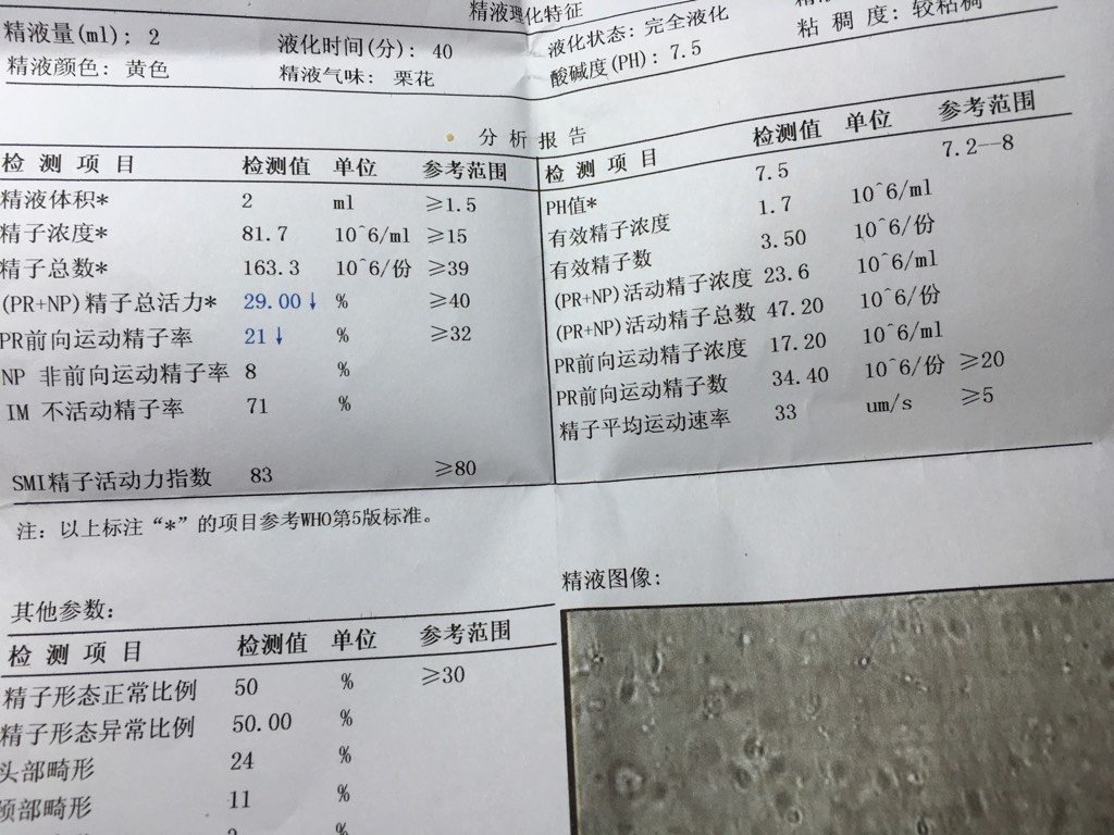 结婚一年多没怀孕,叫老公先查了一下,结果好伤心,晴天霹雳,居然弱精!!!精子总活力百分之29!!有