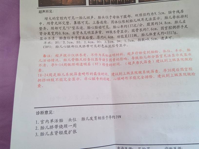 胎盘已经3级了,离预产期还有15天是不是没有营养了啊? 胎盘已经3级了,离预产期还有15天是不是没有营养了啊? 点击展开 伱卟是我滴~\( 2014-09-11 15:01 为您推荐: 其他回答 听医生的,可以考虑住院观察。 @笑对生活 2014-09-11 16:49 羊水情况正常的。 威县高兰云 2014-09-11 15:34 根据你的叙述,B超显示胎盘三级,距离预产期还有十五天,就现在生也是足月产,建议你胎心监护。 威县高兰云 2014-09-11 15:04 相关问题 我都超预产期3天了,胎盘3级什么时候生啊? 2012 3 15检查的 双顶径9 0cm股骨长约7 2cm胎心率150次/分 胎盘成熟2级 预产期过了6天 胎动也很正常 2012 3 15检查的 双顶径9 0cm股骨长约7 2cm胎心率150次/分 胎盘成熟2级 预产期过了6天 胎动也很正常