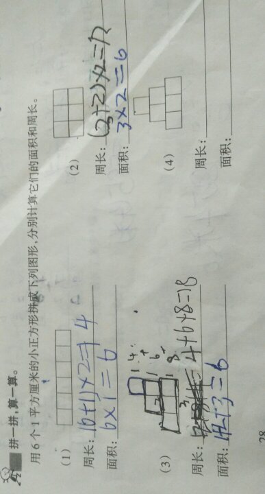 小学三年级数学,拼图计算周长和面积(请忽略孩子写的字) 点击展开 匿名用户 2016-07-18 19:17 满意回答 第几个题? 匿名用户 2016-07-18 19:19 宝宝知道提示您:回答为网友贡献,仅供参考。 相关问题 在幼儿园指南中拼图属于科学还是数学 哪一些类型的拼图小游戏适合上小学的小宝玩? 一年级的正方形和长方形的面积和周长的工式