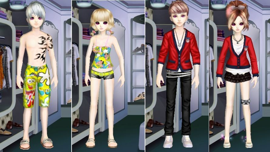 男:上衣 黑火流星,下身 海绵短裤 女:上衣 靓彩吊带,细过宝下身命抗 Hot旋风,发型 金发尤物 鞋子 扣扣相医暖连