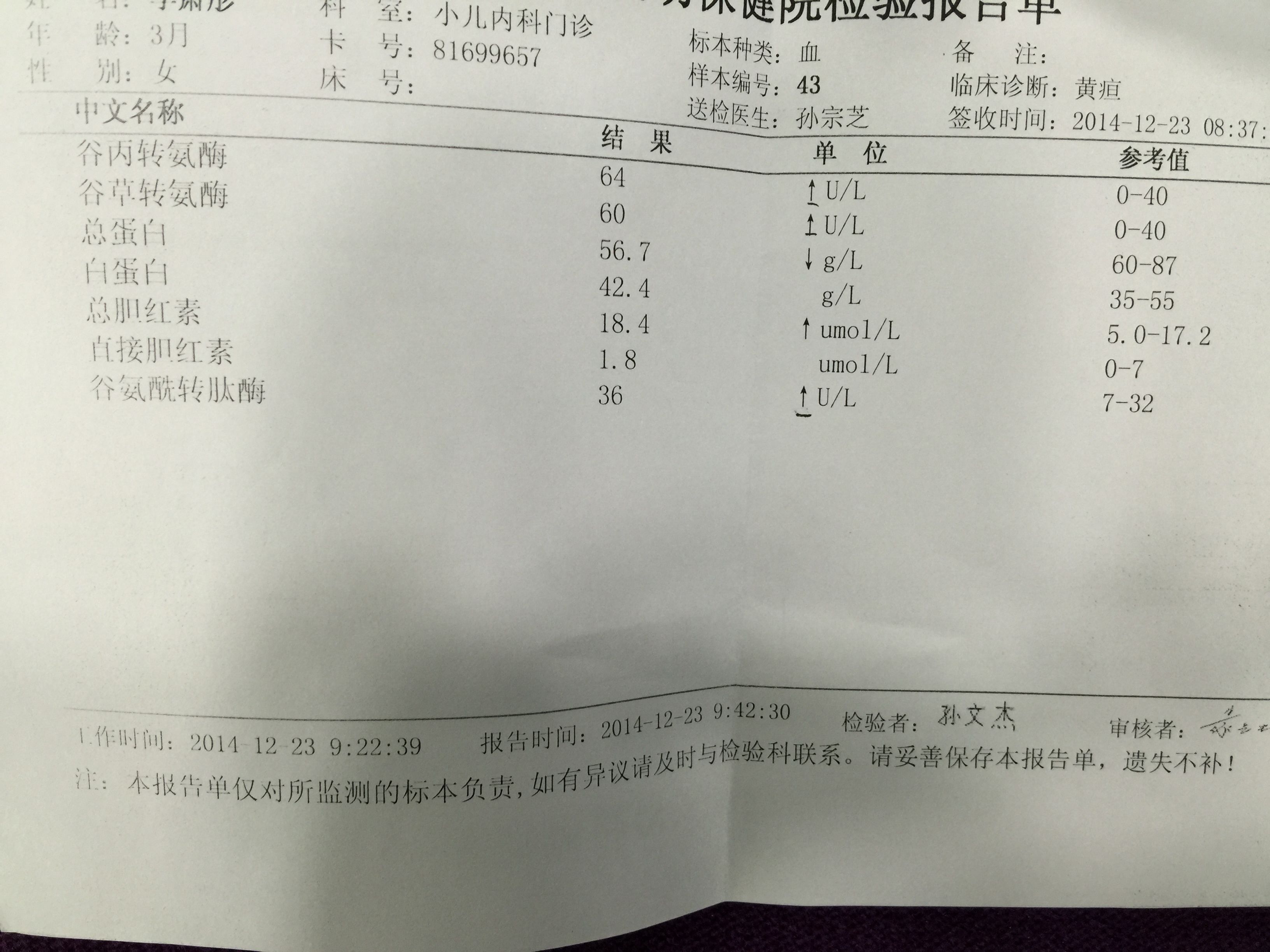宝宝三个月黄疸7.1,之前有吃过茵栀黄,验肝功能结果如下,大夫开的双歧杆菌+茵栀黄+亮菌 吃了8天没管用 检查黄疸7.0 答复说宝宝是病理性黄疸 继续让吃药 再吃半个月 我想问下宝宝的情况严重吗?一定要吃这么多药吗? 点击展开 匿名用户 2015-01-06 09:33 为您推荐: 其他回答 你好,宝宝如果三个月的时候还有黄疸的话,平时宝妈最好让大夫为宝宝开点治疗黄疸药物比较好些,平时需要多注意观察宝宝情况 命中苦乐 2015-01-06 10:02 相关问题 吃茵栀黃拉肚子严重我家宝宝15天了,大夫说我家宝宝黄疸去的不好,开的茵栀黃颗粒,但宝宝吃完茵栀 大夫您好!宝宝满月零八天、这两天发烧吃药后好了、之前有吃黄疸药茵质黄、退烧后明天能接着吃吗?谢谢