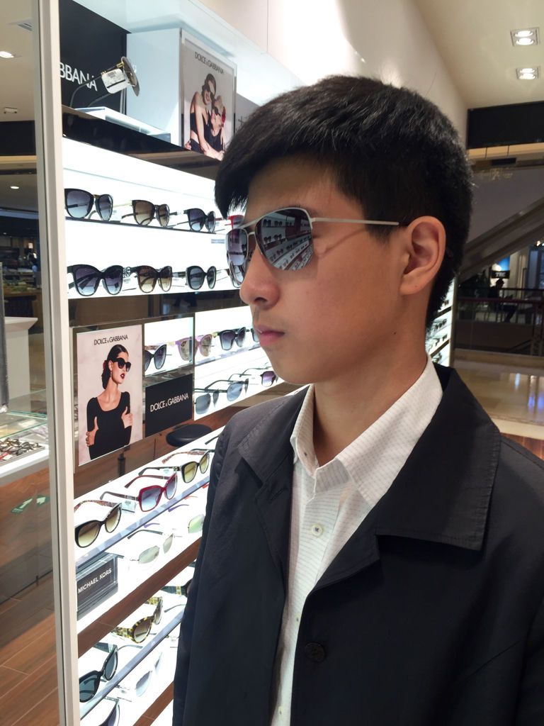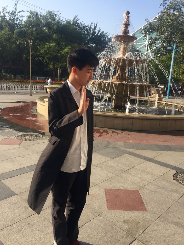且看眼前这位少年郎, 身穿黑色长摆风衣, 白色排扣纯棉衬衫, 下身着黑色修身长裤, 白色休闲帆布鞋, 最引人注目的莫过于那副黑色银边又大气十足的墨镜,墨镜上留着清爽利落的短发,显得精神饱满,再往下那略微出镜的汗毛,配上那清秀的面孔,透露出一种少年多忧愁的无奈。