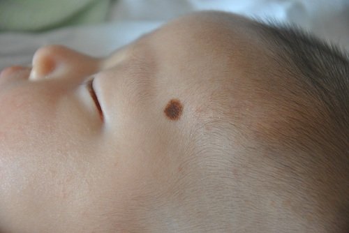 宝宝在出生时就已经有了, 痣比较大, 是平的, 仔细看里面是很多个小黑细胞组成, 就像皮肤里进了很多灰. 往外围减少变淡, 现在三个多月了, 感觉比出生时大了一点, 没准确量,不知是否是心理作用. 求专家帮忙解释一下这是什么痣? 该怎样处理.