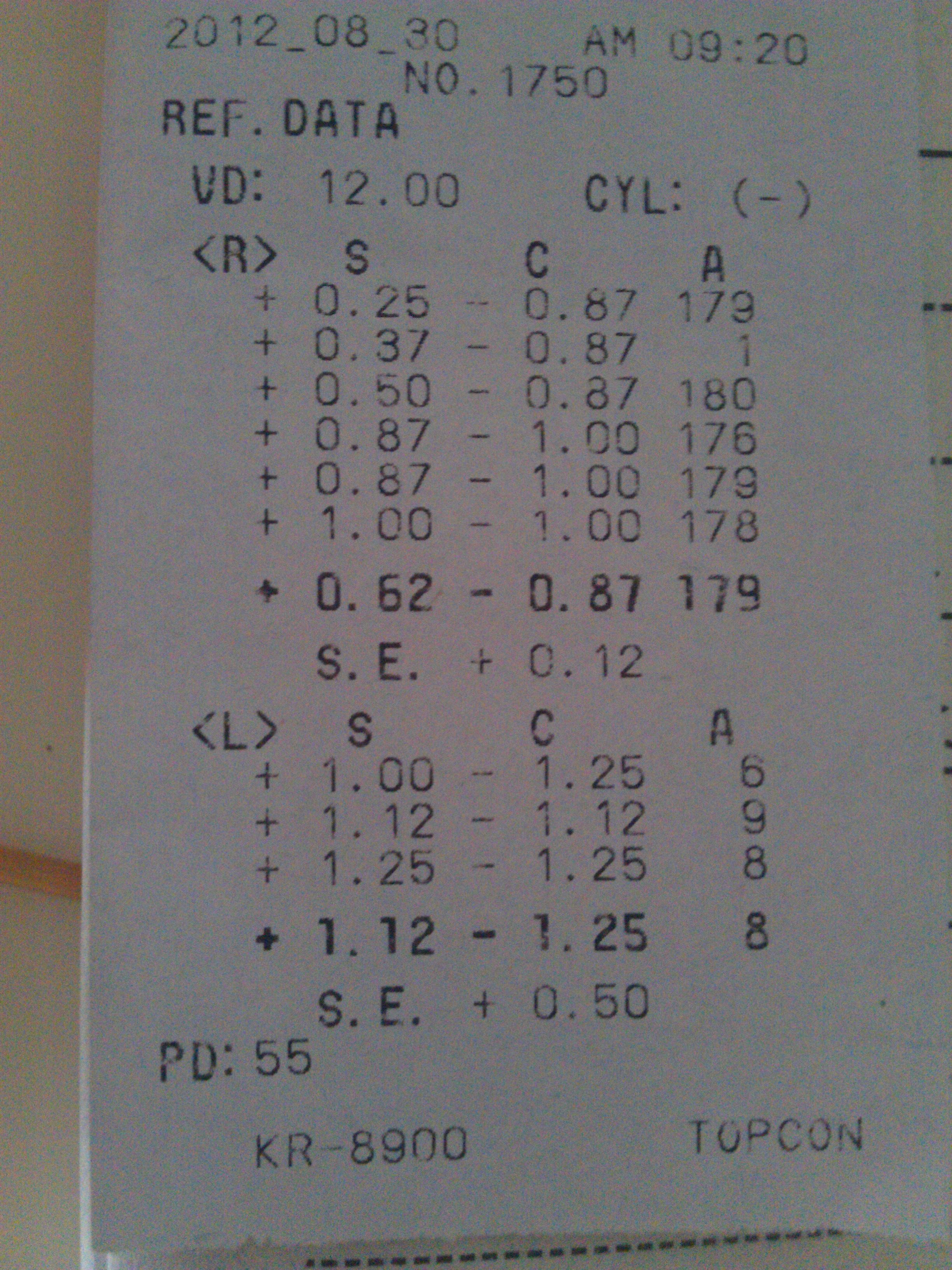 小孩多大了~~看这情况的话是有点散光~~!这个单据是电脑验出来的~~不是精确数据~~最好是出具个精确插片验光验出来的光度~要不 无法下定论~~!