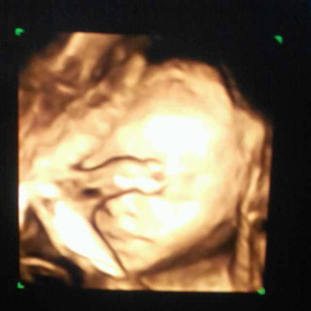 这是24周的时候医生给宝宝拍的照片 眼晴都挡着的 不知道是不是医生没耐性随便拍的