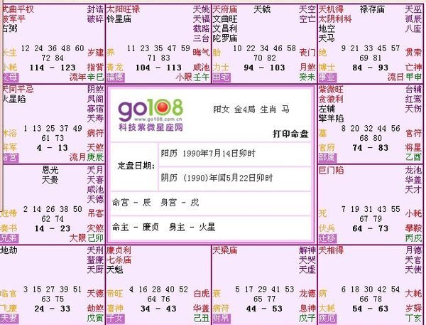 命宫 你是一位喜欢博取别人欣赏的人,所以你多能注重打扮。而你从小博学多记,是善于应付各种各样的人们。 八面玲珑的你,做任何事前都会详细的计划,而且细心的完成,所以你是公司的外交或协调部门中最理想的不二人选。 虽然你不是一个出名的人物,可能只是一个没没无闻的小角色,但你却常拥有机会能够间接的掌握大权的...命运。 尤其是实际负责整个工作的策划、协调、执行与决定权;就像藏镜人一般,默默的在背后推动一切工作,可说是退居幕后的大功臣。 你的这一生有许多的贵人在你身旁出现。千里马也需伯乐识,经常依附於强而有力的后援者,你才能适时的发挥你的长才。 在交友方面,你是能应付各种各样的人们,所以你交友的层面是非常广;上至上流社会,下至市井小民,可称得上是三教九流都有朋友在。 这些都是你擅用应酬社交的手腕所结交的啊。可不要小看这些人啊,这些可能就是你一生的贵人喔,经常在重要关头对你自己产生很大的帮助,深深影响你的一生啊! 个性温和的你,并不会轻易与人发生争执。而且你富同情心,并乐于帮助别人,而且帮助别人的心态多发自内心,热情诚恳,而不求报答。你在待人处世上,永远一视同仁,没有尊卑贵贱的观念,让你所到之处,永远受到别人的爱戴。 外表高雅大方的你,有着贵族般的仪态,气质优秀并注重社交礼节。但你不是那种高高在上,不可一视的,相反的你是很容易融入人群中。 你口语清晰,态度谦恭,身裁中等,行走坐立之间,姿态优美。你颇能受到众人的欢迎。一般说来,天相星的男人,都拥有一身细致的好皮肤,但在皮肤颜色上稍嫌略深。 适合的职业 一般说来,由于外交和协调的长才,并且做事细心又有条理,所以你适合在人际关系上常有互动的政治圈和商业界;例如:民意代表、立法委员、单位主管或公司经理。 你富同情心又爱帮助人的个性,也适合在教育、医药界任职;例如:教授、律师、医师、或慈善机构发起人、协会理事等都是蛮不错的工作选择。 兄弟宫 太阳星与巨门星同宫时,兄弟的好胜心强,相处之间容易有口角。你和兄弟姐妹之间具有亲情,重理智,兄弟姐妹各有成就。 对于兄弟之间的口角不要太认真,那是一种感情的表现喔。 Top 夫妻宫 武曲与贪狼同宫的话,你交际手腕很好,一生多酒食应酬之事,交往的异性朋友很多;你的恋爱经验多而早,恋爱过程多变化,但是结婚有稍晚的倾向,如果早婚则夫妻之间较容易有口角是非的倾向。 你太太是属于长相艳丽,豪放而热情的类型,她身材窈窕,迷人而具有魅力,注重穿着打扮,在少女时代就喜欢与异性交往。她从小性情刚强豪爽,喜欢照顾别人;为人坦白、情绪变化大,把喜怒哀乐写在脸上,是个爱恨激烈之人。 她为人外向、好动,在外人缘很好,在婚后仍有在外工作之倾向,不喜闲居在家从事单纯的家庭妇女工作,为一标准的现代化女性。她也比较会理财,工作能力强,看上不顺眼的事,自己会亲自接手过来做;除此之外,她虽外向,但是照顾家庭也是细心而做事勤快,天生具有坚忍不拔的毅力,遇到任何困难也不会半途而废,总之她在事业与家庭上,常常成为责任感最重的人,是全家所依赖的对象。由于她在婚后仍保持较频繁的社交生活,无形中使你的身份地位有退居次要的感觉,容易因为互相不满而发生口角是非,不过总之婚姻生活的状况,尚称顺利。 子女宫 你的小孩性格温顺,长相斯文,深得你的宠爱。 他的学习好奇心强,个性乐观随和,因此很受到周围长辈的照顾疼爱。 幼时身体健康,容易带养,对你们孝顺而听话,只是性情爱玩且比较懒惰,兄弟姐妹之间相处融洽、互相帮助。 他与朋友之间的相处和睦,并容易得到老师的奖励与喜爱,可说是老师眼中的乖宝宝。 天资聪颖,具有文学艺术上的天份,可以朝着相关方向发展。 一个性内向而性格善良的单纯男孩,可说是人见人赞。 财帛宫 财帛宫中有天府星的人,一生的财运很丰足,衣食无忧,不仅赚钱的过程轻松而不劳碌,而且会有很多意料之外的财运。 你的资产方面,不论是动产或不动产,都能达到富足的程度,尤其以不动产方面为多,有很多的田地家宅。 你赚钱的过程中,受到朋友或贵人的帮助颇大,且常处于被动的立场,会因他人的推动与援助而得致富。 天府星在财帛宫的人,一生的财运良好,有储蓄思想及投资能力,擅于运用金钱,喜欢置产或做多样化的投资生财,可以在稳定中发展。 即使是凶星会聚,也只是稍微增加支出与耗散而已,并不会带来很大的坏运。 疾厄宫 你容易有盲肠炎、胃癌、乳癌等疾病产生,在饮食上少吃油腻的食物,并尽量以清淡的食物来取代刺激性的食物,除次之外,还要注意避免饮食时间不正常以及暴饮暴食,如此,才能减少对身体产生负荷,除此之外,你因下腹无力,故容易积存脂肪。 喜欢思考,「想得多、想得远」是你的优点但也是你的缺点,有时候你会因为思考太多而钻牛角尖,要留心因思考过度而引起的神经衰弱,若长期处于神经衰落的状态,则会引起长期失眠甚至演变成「忧郁症」。 平常应给自己适当的心情宣泄,别让精神长期处于紧绷状态,要避免给自己过多的压力而造成头痛、失眠或食欲不振。 Top 迁移宫 你在外地经营事业,容易有名利双收的好运哦!所以你很适合外出发展自己的事业,如果在家继承祖业 , 就可能没那麽多丰功伟业罗。 此星在迁移宫的人,外出时容易结交朋友,十