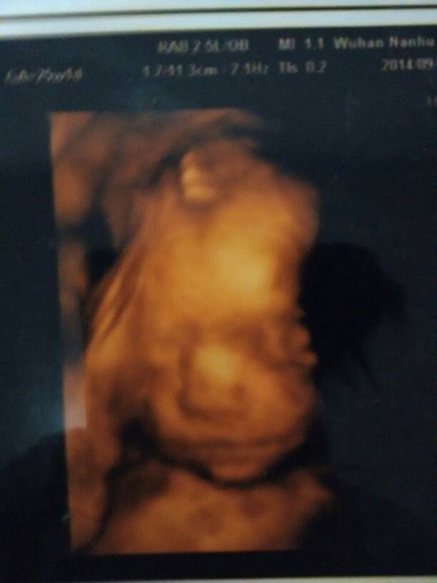 做四维检查医生给的一张宝宝的照片,照片显示宝宝的头部有像白色的骨头类似的东西,问医生那是什么,医生