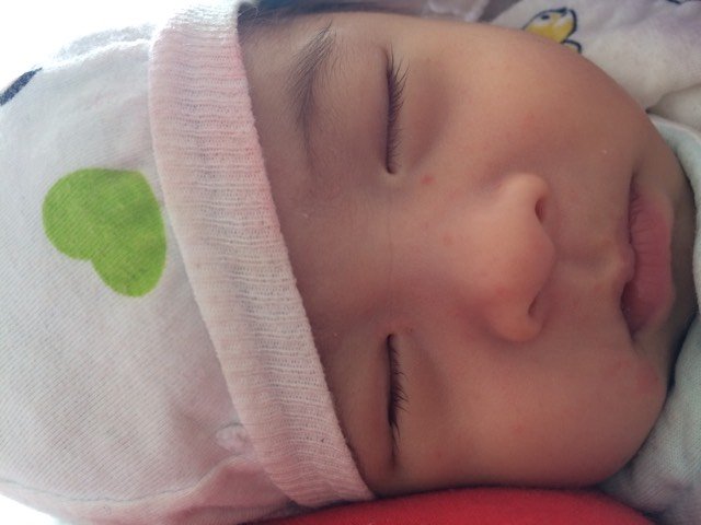 请医生看一下,我家宝宝眼下和嘴角那里有红疙瘩,不知道是不是过敏还是起的什么?你们能看出来吗?