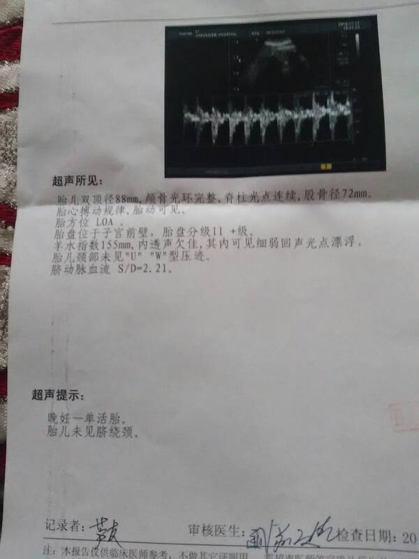 孕37+3,医生帮忙看看头是不是小了,腿是不是短了啊?胎方位LOA是什么意思? 孕37+3,医生帮忙看看头是不是小了,腿是不是短了啊?胎方位LOA是什么意思? 点击展开 雨纷飞_5BhI 2014-11-17 18:29 为您推荐: 其他回答 胎儿位置是正常的右侧枕位的情况,不需要担心,胎儿双顶径的大小是符合怀孕孕周的。祝您好孕。 skychenlanlan 2014-11-17 20:34 腿不短吧!我的头是9.3腿才6.9 改变自己_wxm3 2014-11-17 18:59 ,,,,, 高以翔 2014-11-17 18:53 相关问题 孕35周,检查结果:BPD83mm,FL65mm,羊水指数:120mm,胎方位:LOA,S/D比: 孕32周,双顶径86 2,股骨长度57 4,请问宝宝是多大呢?医生说股骨不够长,说宝宝腿有点偏短 胎方位LOA,孕38周,双顶径为94mm,股骨长径为73mm,胎心率为143次/分,胎盘厚度52m