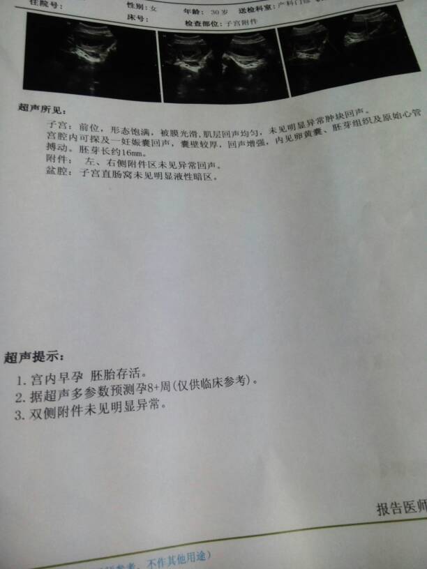 八周彩超归来,大家快来接好孕 八周彩超归来,大家快来接好孕。 点击展开 …_0BAq 2015-01-30 23:06 为您推荐: 其他回答 好孕,,, 寻の份ヤ依赖 2015-01-31 15:47 祝宝妈好孕 . 记住这一切 2015-01-31 11:40 超声检查结果提示孕囊发育正常、符合与怀孕八周的情况,建议做好孕期保健工作,定期复查即可。 爱狂风一样舞蹈 2015-01-31 09:14 宝妈好孕! 顺其自然_scOC 2015-01-31 08:53 祝宝妈好孕 152*****590_PBT3 2015-01-31 07:59 加载更多 相关问题 四维彩超归来,大家快来接好孕,有经验的宝妈或医生看看我的单子宝宝健康吗? 为什么医生说预产期是11月13,好孕宝贝显示 有26周加2,而昨天做彩超上面却显示只有25周加5?