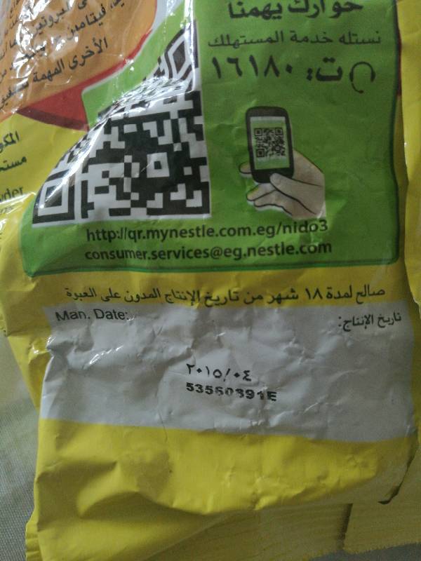 求问这奶粉生产日期是多少?阿拉伯语 点击展开 匿名用户 2016-07-06 18:08 为您推荐: 其他回答 生产日期为2015年4月,有效期12个月 匿名用户 2016-07-08 12:43 相关问题 明治奶粉 生产日期后面 A跟B 什么意思 施恩婴幼儿配方奶粉1段(0-6个月)700g包装,生产日期:08 5 16是不是合格 我买的雀巢甜奶粉没有没有三什么的啊?那个生产日期是5月份!