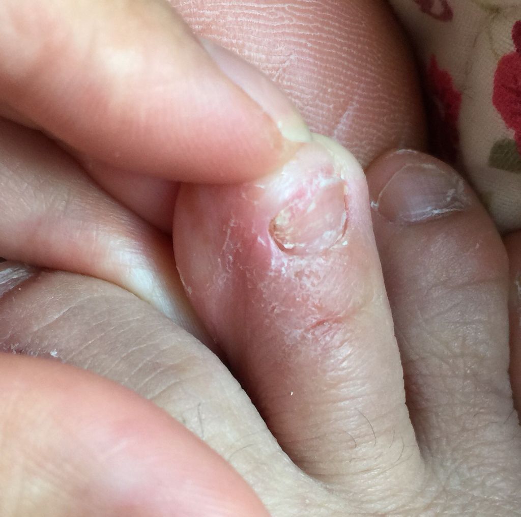 是的,已经感染到趾甲了。