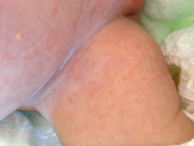 我家宝宝昨天上午发现大腿和肚子那长了很多这样的小红点,主要都是在被尿不湿包住的地方,这是湿疹还是过