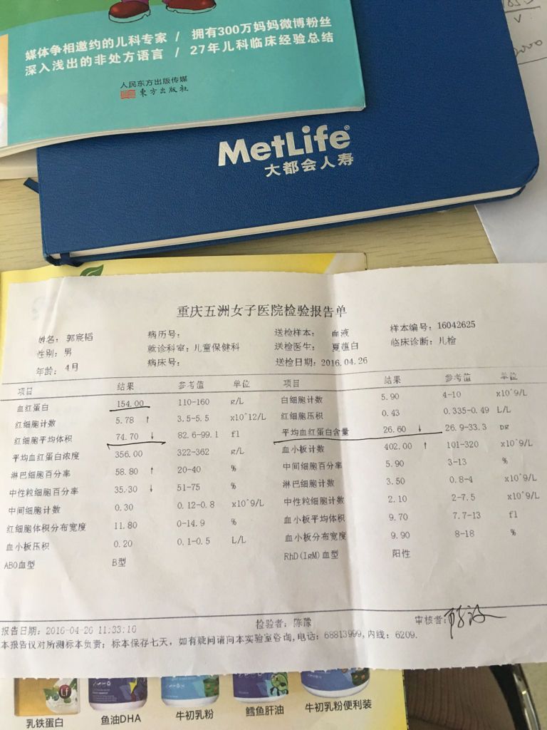 宝宝4个月10天,今天去做儿保,查了一个血常规,说宝宝有点贫血,喊我买乳铁蛋白吃,之后我查了一下数