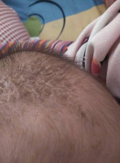 宝宝快5个月了,头上有这样的东西,抹了香油没有用,也不敢咯,是不是皮肤病,用去医院吗?还是有好办法