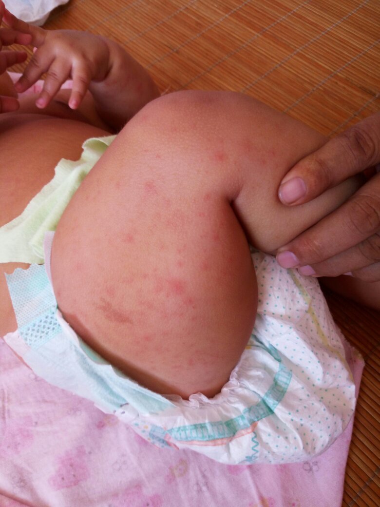 4个月婴儿四肢起了红色包,大小不一,是螨虫咬的还是阳光过敏,还是受风?是荨麻疹吗还是什么
