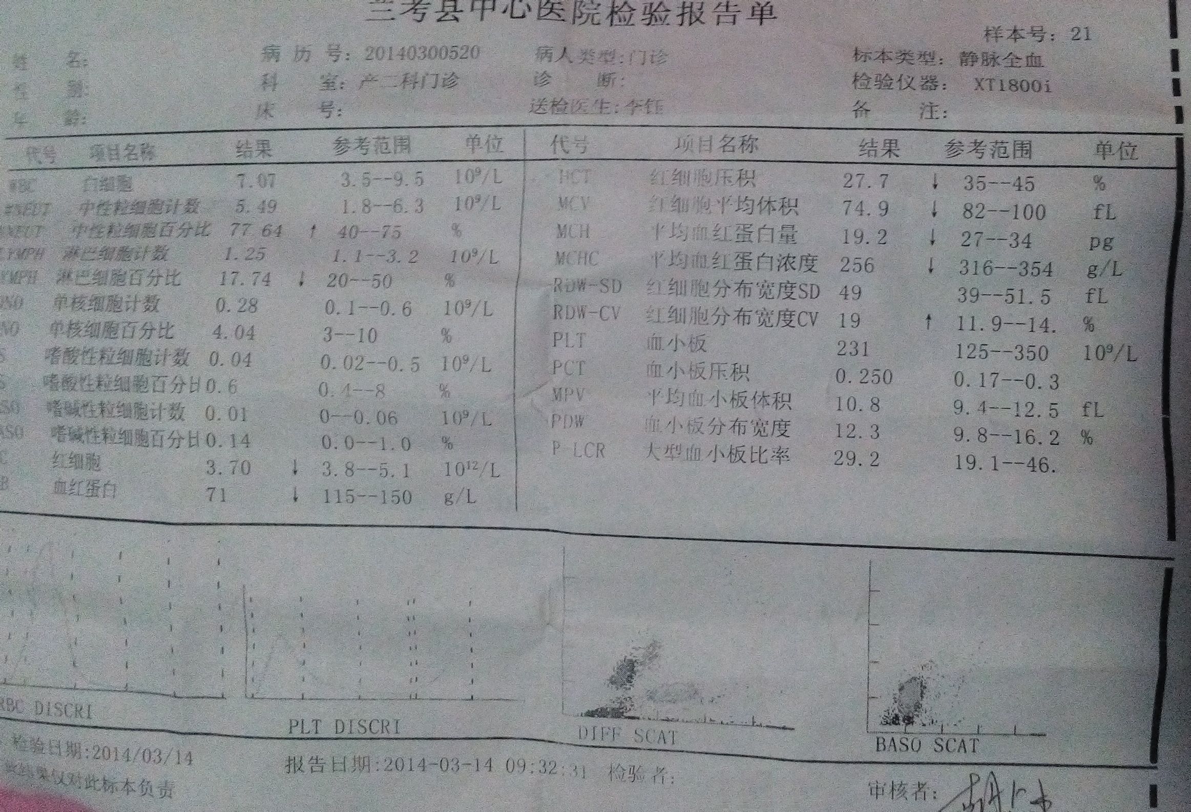 怀孕8个半月,查出贫血,能否从检验结果看出是缺铁性贫血吗? 点击展开 匿名用户 2014-03-28 20:01 为您推荐: 其他回答 病情分析: 你好,从你目前的检查结果来看是可以诊断为小细胞低色素性贫血的。 指导意见: 也就是缺铁性贫血,建议口服速力菲治疗,祝你早日康复。 匿名用户 2014-03-28 20:04 相关问题 我家宝宝快九个月了,有些贫血,做了血常规怎么能看出是不是缺铁性贫血呢? 男宝十一个半月了,检查出来缺铁性贫血,医生开了复方硫酸亚铁颗粒!可是宝宝不吃!准备换成铁之缘片,不 现在怀孕七个月,查出有缺铁性贫血自己买了复方锌铁钙口服溶液