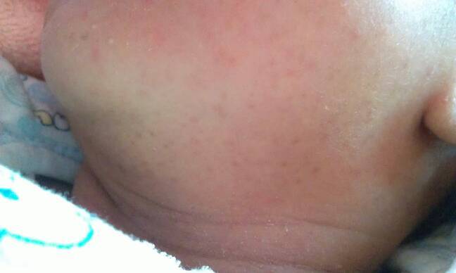病情分析: 从图片上看,宝宝脸上、颈部的黑斑是色素沉着 指导意见: 宝宝的色素沉着可能是以前的小红色丘疹恢复后遗留的炎症后色素沉着,不要紧,自己可以慢慢消退,用双氧水外涂可以淡化一些。 医生询问: 宝宝脸上、颈部之前有红疹吗?
