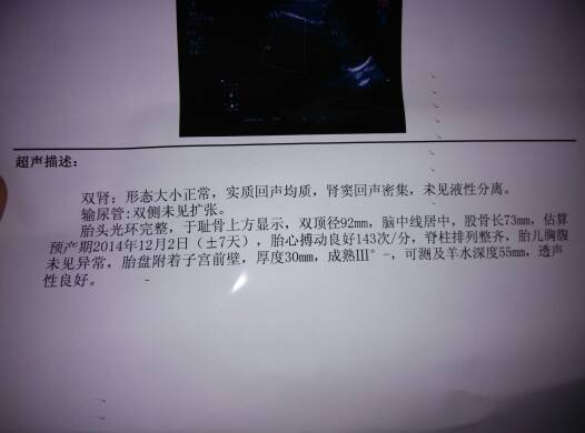你好,看胎儿的双顶径和股骨长的比例合适的,接近足月了呢,祝你顺利生产啊,生个健康的宝宝啊