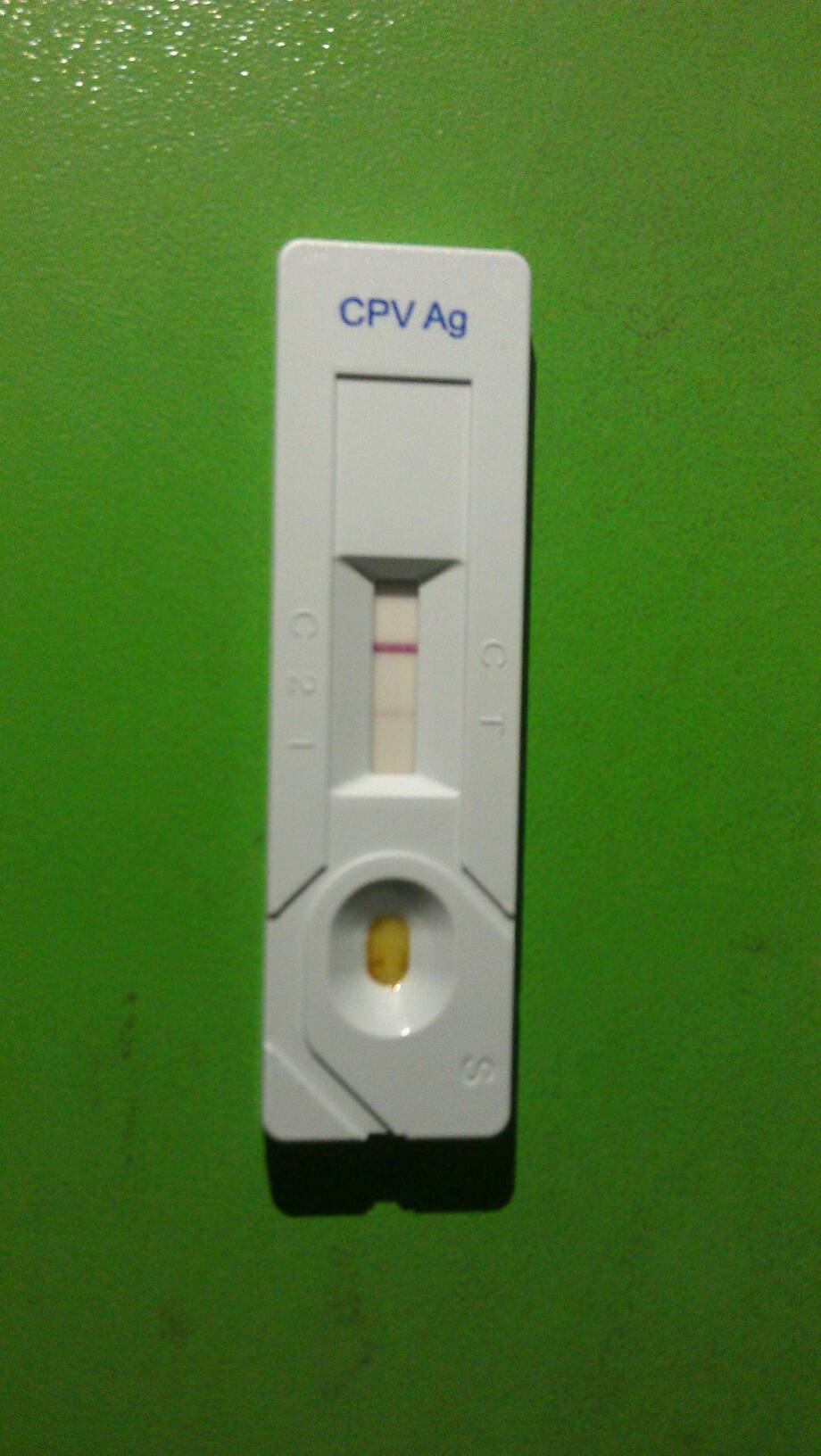 前两天买了只两个月的泰迪狗狗,担心怕有细小,买了试纸回来测试,C线正常,T线淡淡有一条,但是狗狗能